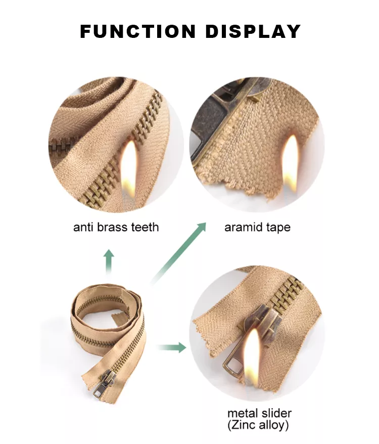 Le cerniere in metallo ignifugo TRC sono realizzate con fettuccia ignifuga di alta qualità con eccellenti proprietà autoestinguenti, prevenendo efficacemente che la fettuccia bruci o si accenda nell'aria, migliorando sostanzialmente la sicurezza di indumenti e attrezzature. Conosciute per la loro eccellente resistenza al calore, queste cerniere possono resistere all'esposizione a breve termine a temperature fino a 300°C senza restringersi, rompersi o sciogliersi. Le loro prestazioni stabili e la durevolezza duratura li rendono una scelta affidabile per l'uso in ambienti difficili e ad alta temperatura.